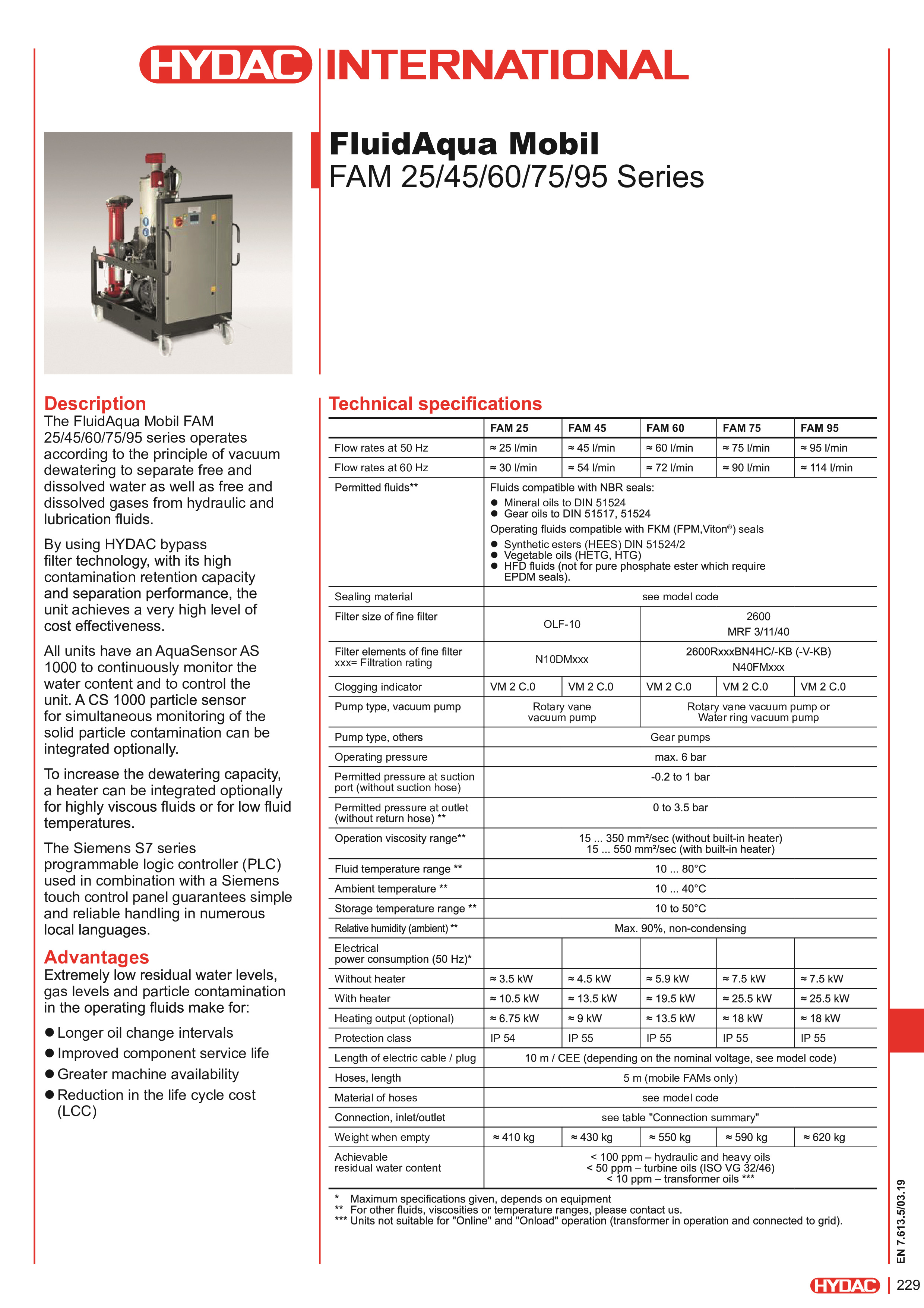 Hydac FluidAqua Mobil FAM 25/ 45/ 60/ 75/ 95 Series
