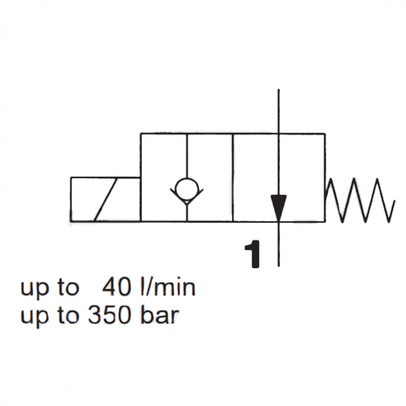 In the reverse direction there is free flow through the valve when the hydraulic force on the piston exceeds the solenoid force (approx. 9 to 20 bar).