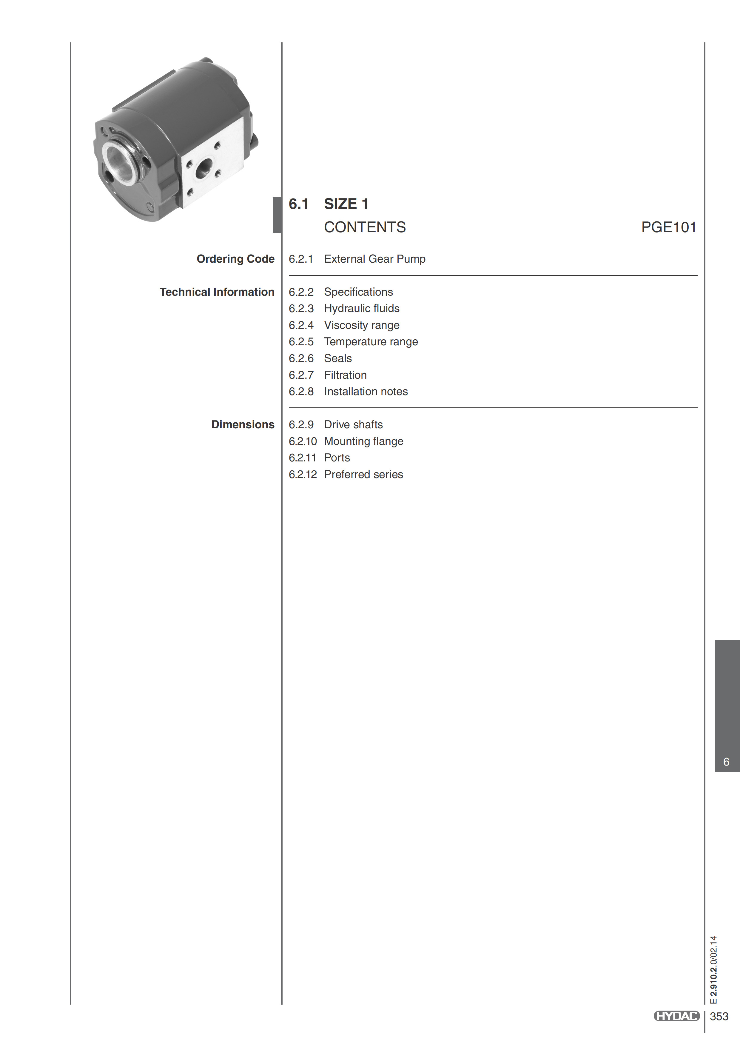 HYDAC External Gear Pumps Size 1 – PGE101 are built for reliable and efficient hydraulic power delivery in a wide range of industrial and mobile applications. Featuring robust NBR seals and optimized internal design, these pumps ensure long service life, consistent flow performance, and reduced maintenance requirements. With flexible mounting options and strict filtration standards, the PGE101 series offers dependable operation even under demanding system conditions.