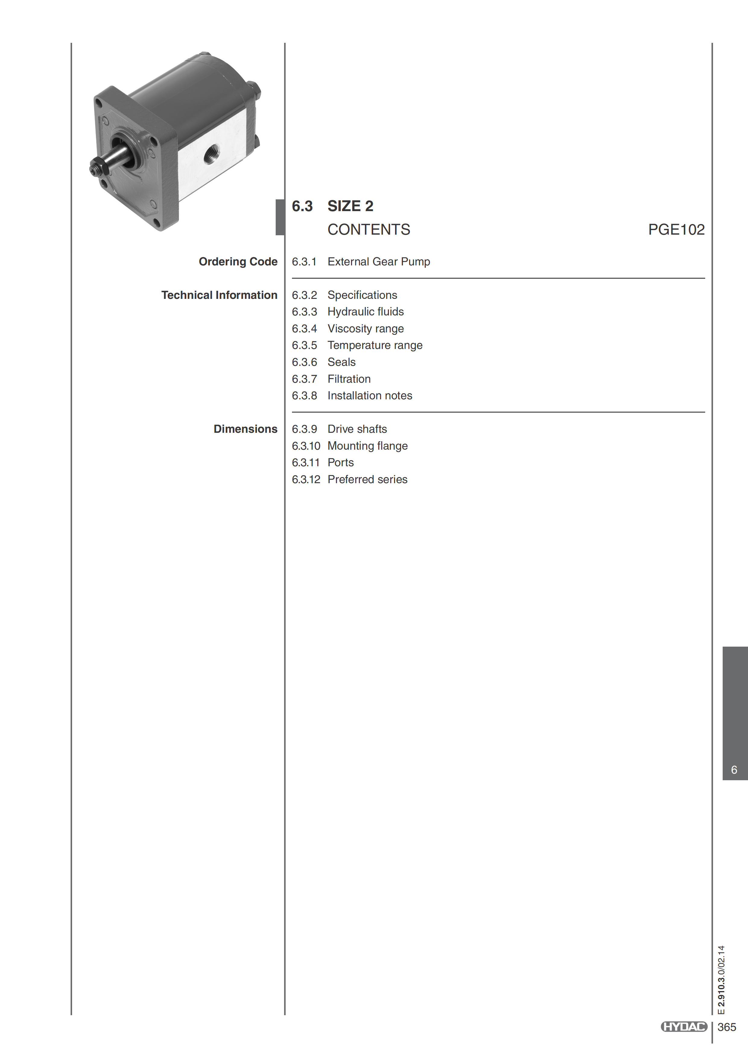 Hydac External Gear Pumps Size 2 - PGE102