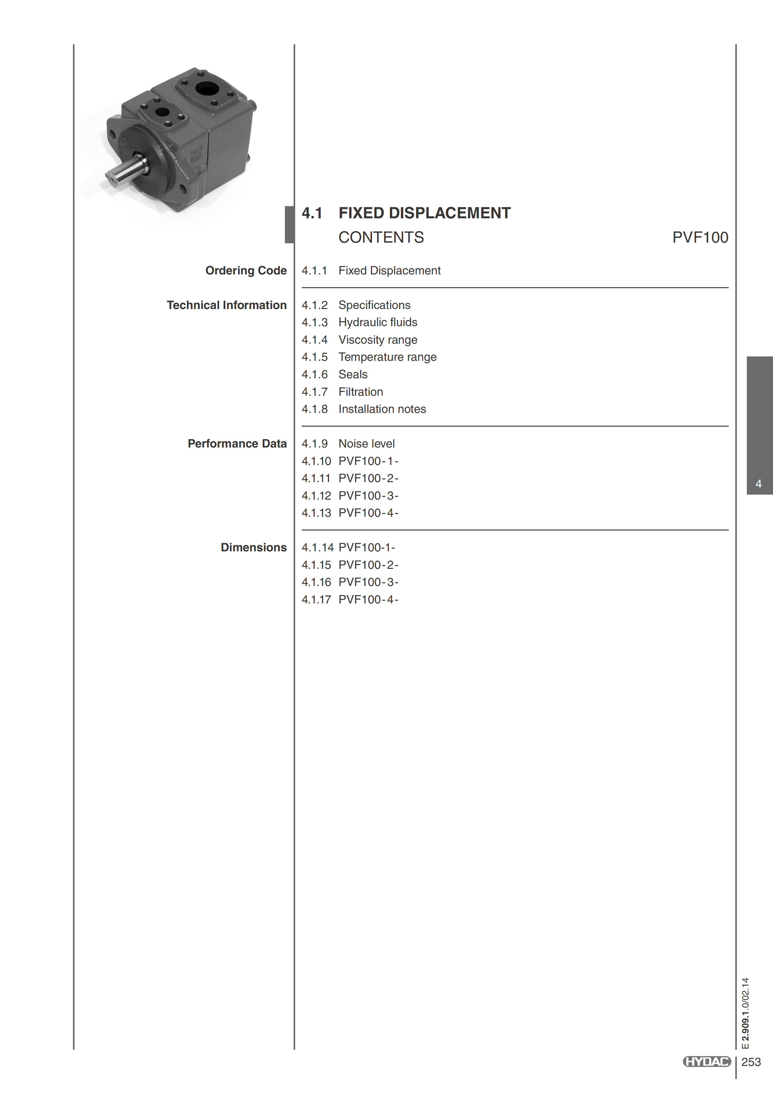The HYDAC PVF100 Series Pump is designed for reliable hydraulic performance with mineral oil, synthetic, and water-glycol-based fluids. Equipped with NBR or optional FPM seals for aggressive fluids, it supports a wide viscosity range and precise operating conditions, ensuring long service life and smooth system operation. Its flexible mounting options and attention to suction and commissioning requirements make it ideal for demanding industrial applications.