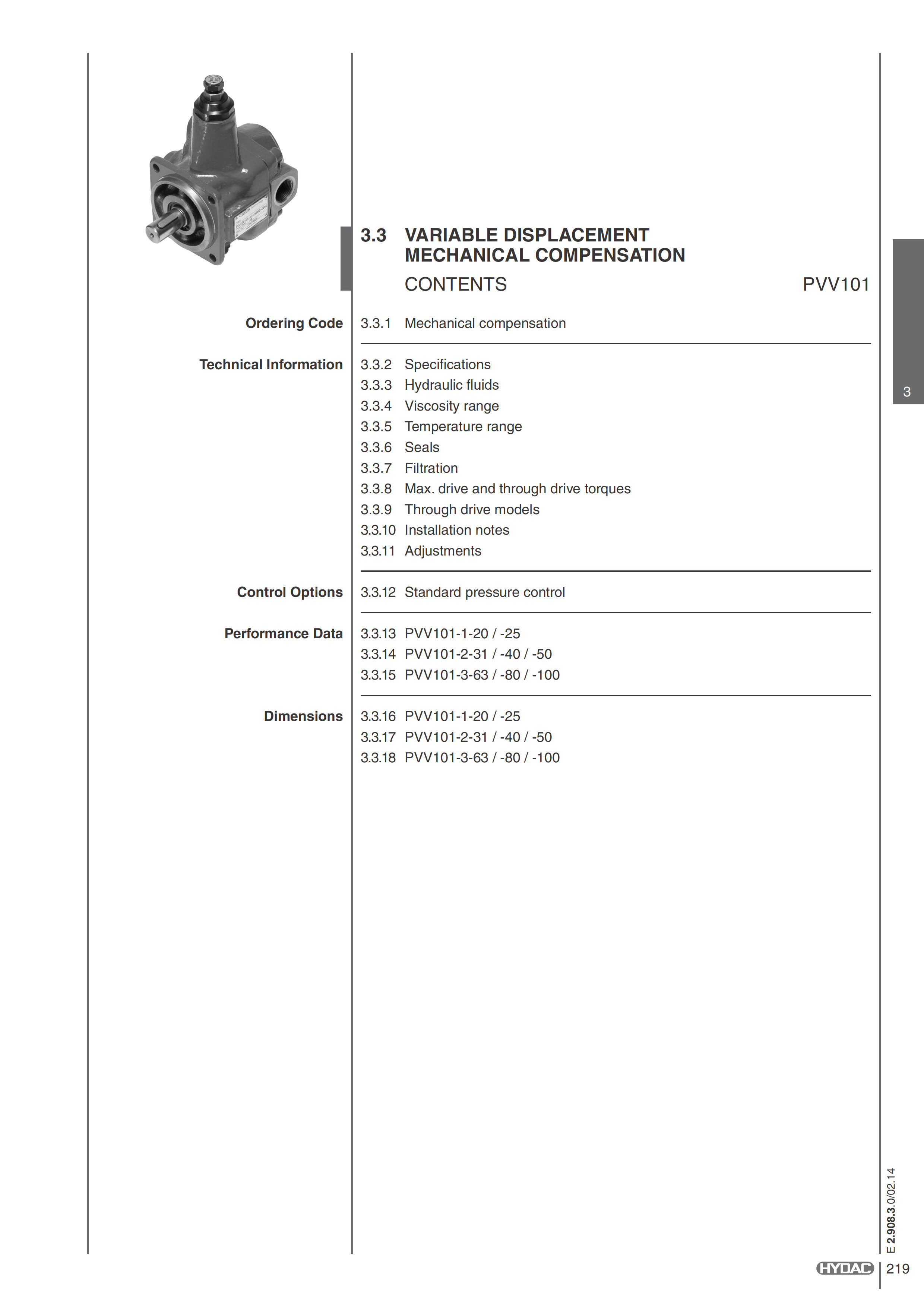 Hydac Variable Displacement Mechanical Compensation - PVV101