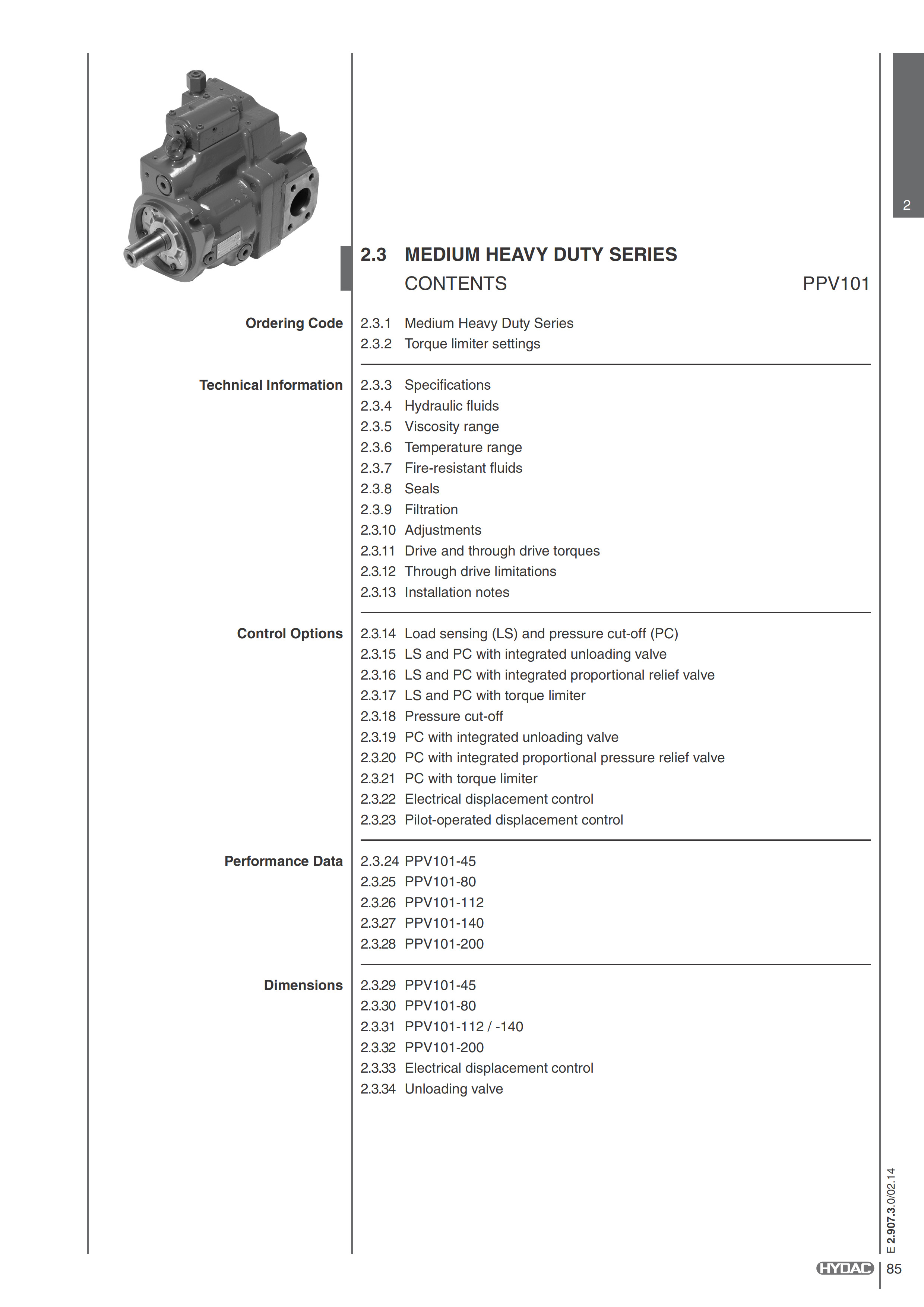 The PPV101 is a medium heavy-duty axial piston pump designed for high-pressure hydraulic systems requiring reliable performance and precise control.