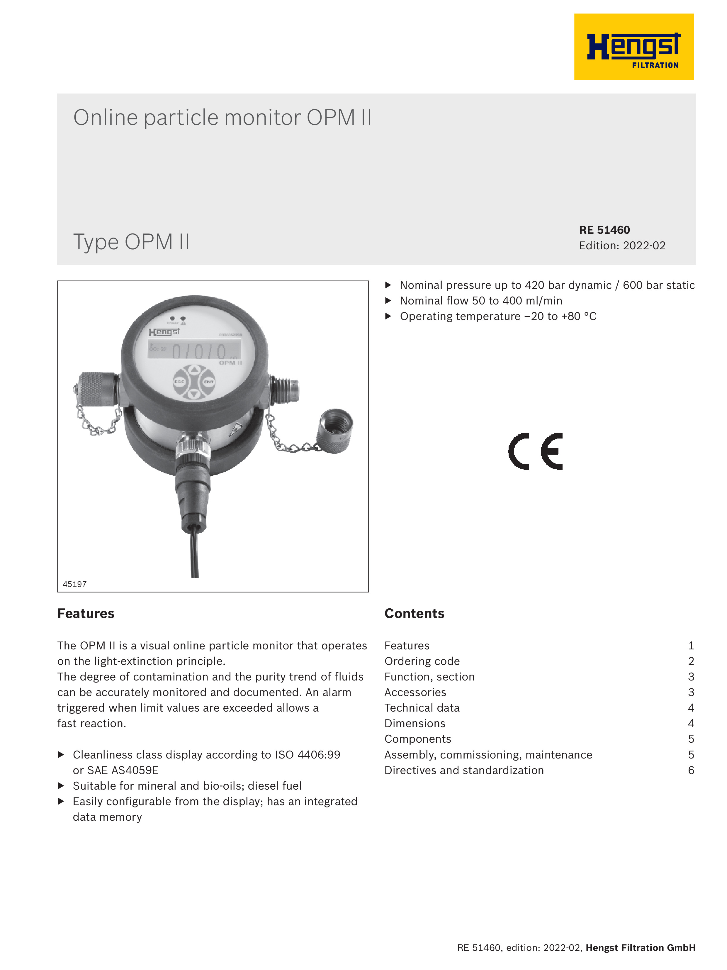 - The OPM II is a visual online particle monitor that operates on the light-extinction principle.