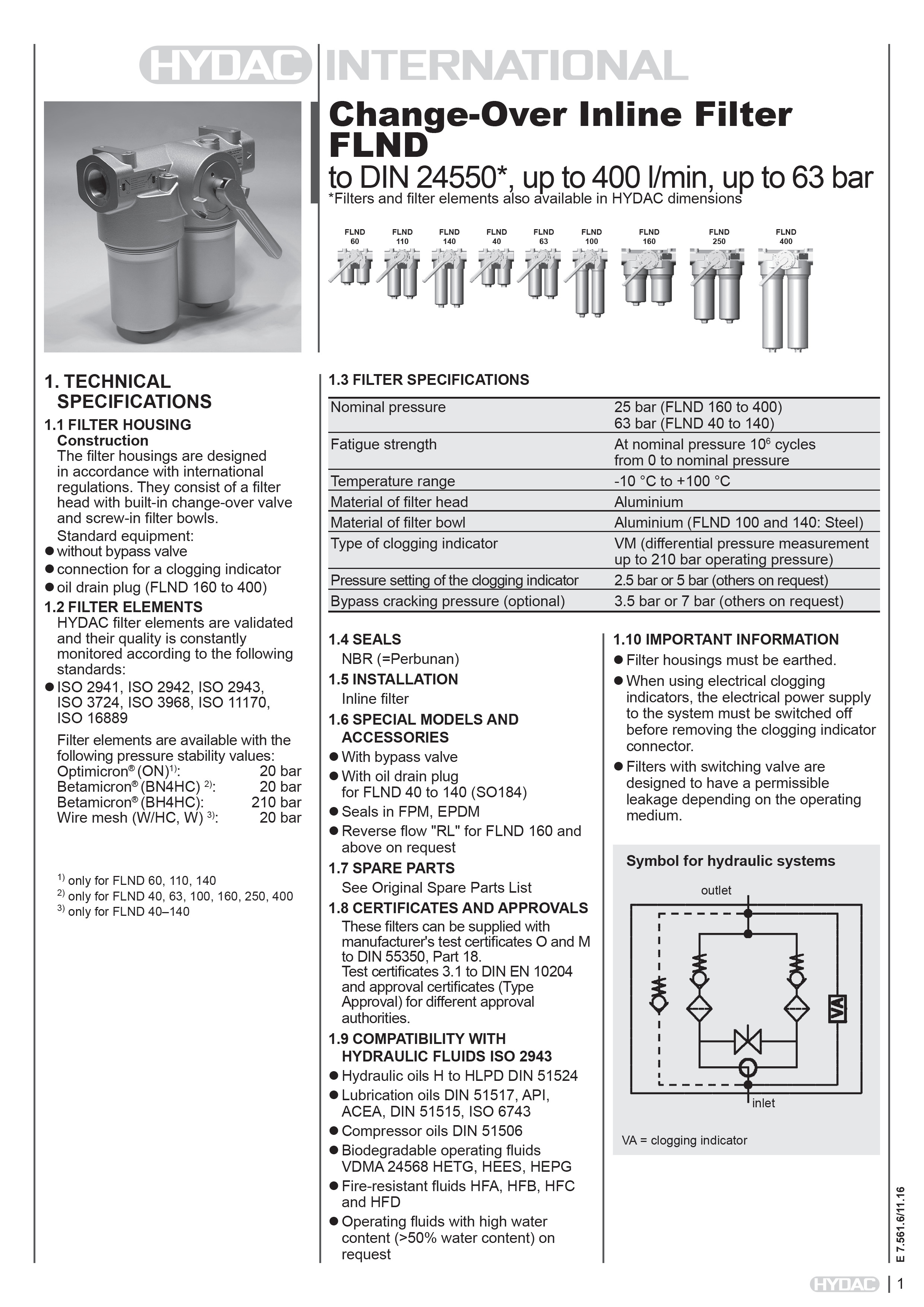 HYDAC filter elements are validated and their quality is constantly monitored according to the following standards:
