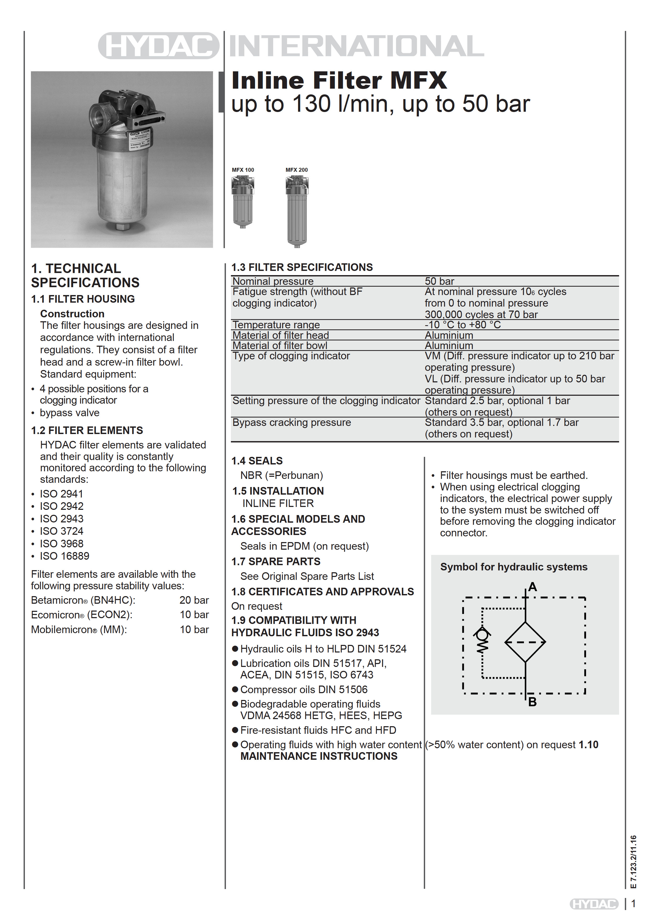 HYDAC filter elements are validated and their quality is constantly monitored according to the following standards: